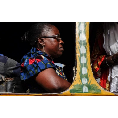Cette femme qui, sans sciller, sans grimacer, voyage avec ses bagages, ses enfants, ses marchandises, et gère tout avec un calme olympien malgré les bousculades, les freinages brusques et embouteillages.
