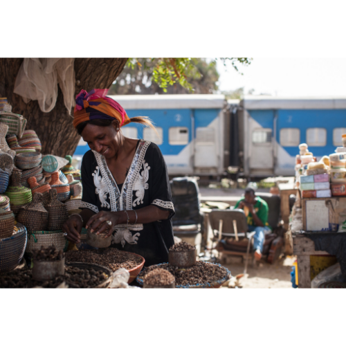 Elle débarque avec sa liste longue comme le bras et son sac cabas qui défie les lois de la physique. Objectif : 15 kg d’oignons, frites, 3 moutons pour Noël (oui, oui), des boubous pour toute la famille élargie jusqu’aux cousins du village. Elle négocie en gros et fait trembler les commerçants.